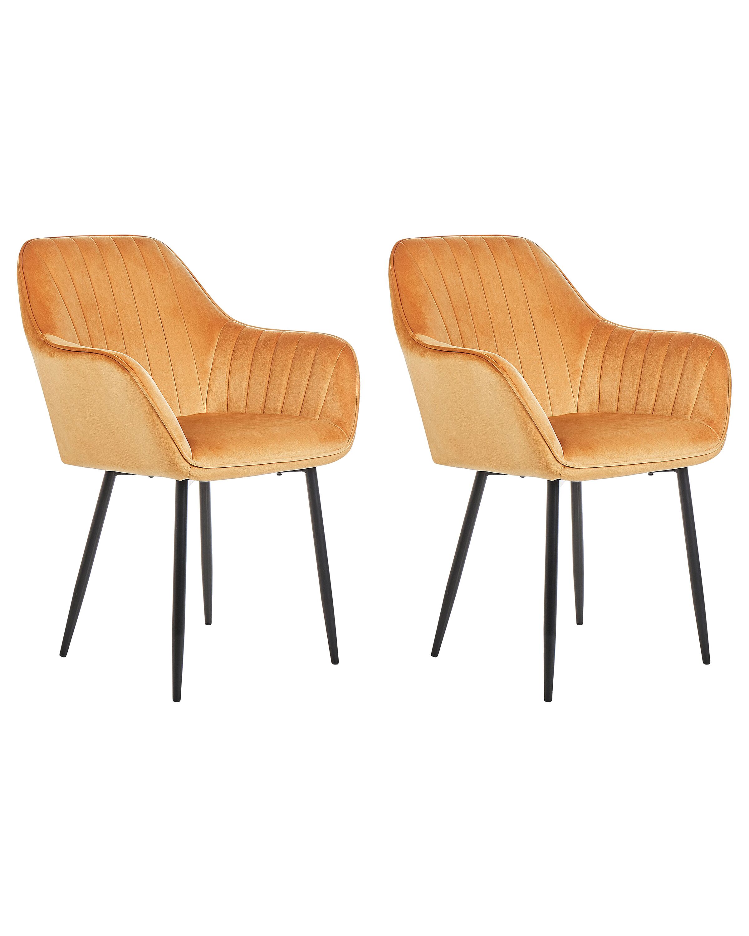 Set of 2 Velvet Dining Chairs Orange WELLSTON Beliani.se